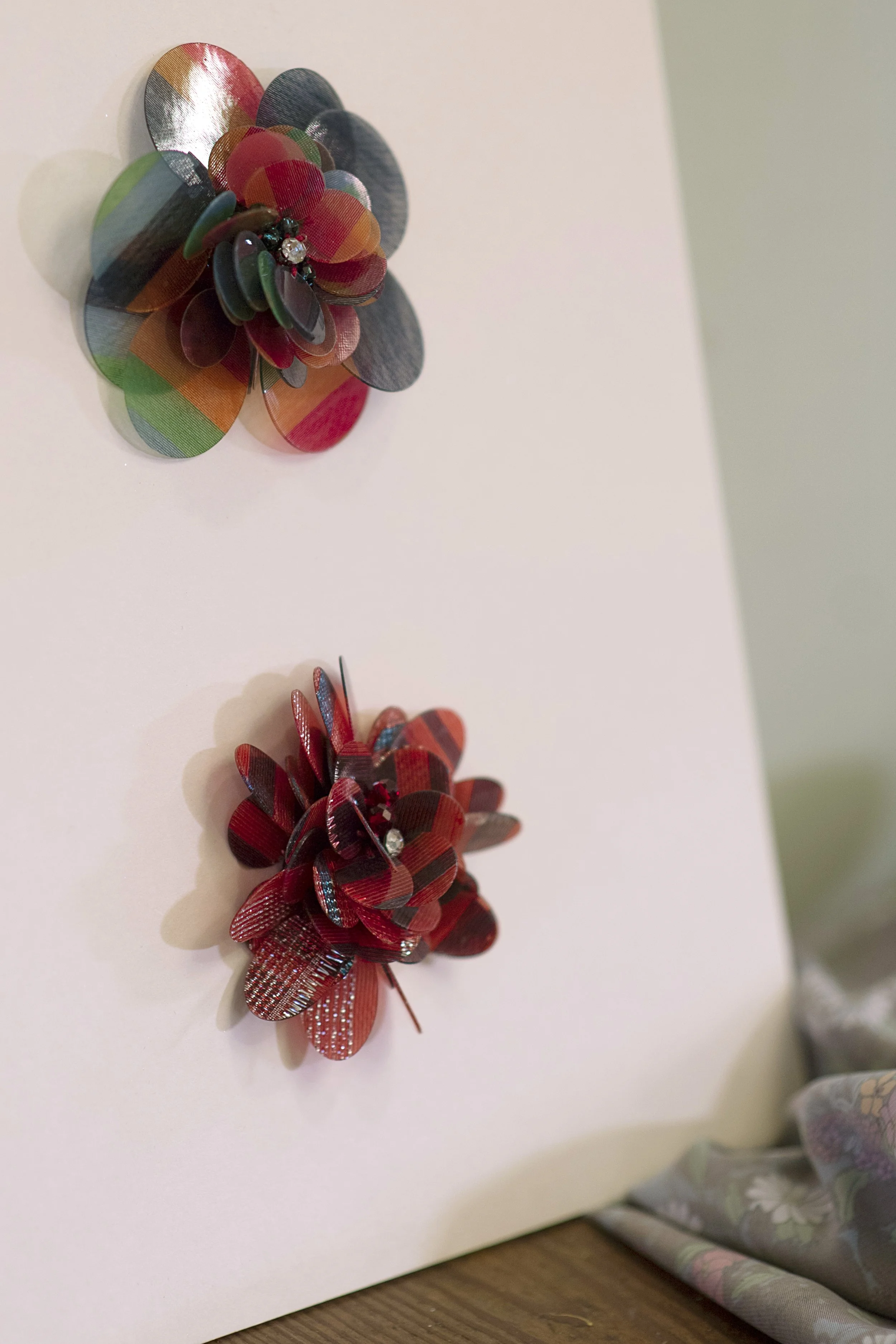 Sí, acabamos de crear especialmente paillettes textiles con organza de seda pintada a mano para la firma Ganbara studio. Unos broches únicos y originales que puedes encontrar en la boutique del Museo Cristóbal Balenciaga.